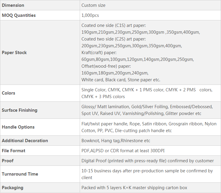 Општи спецификацииНа луксузни торби за хартија: